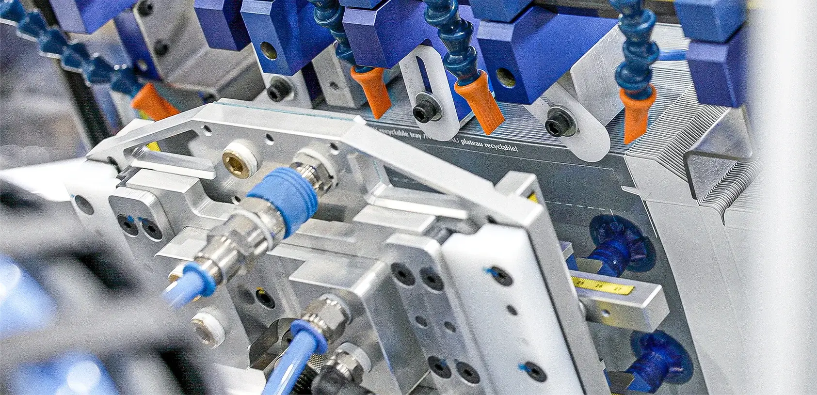 Vac trays are handled by a servo-driven pick-and-place system, ensuring accuracy and repeatable positioning for seamless downstream operations.