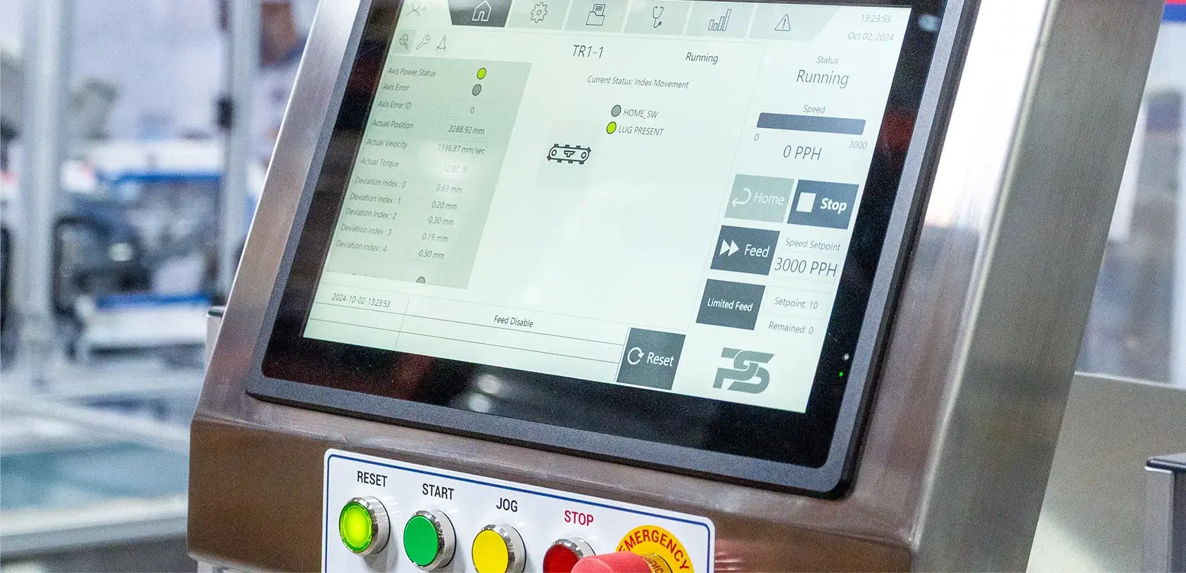 Lids are automatically positioned using a precision servo system, delivering consistent alignment and repeatable placement to maintain product quality and ensure smooth downstream processing.
